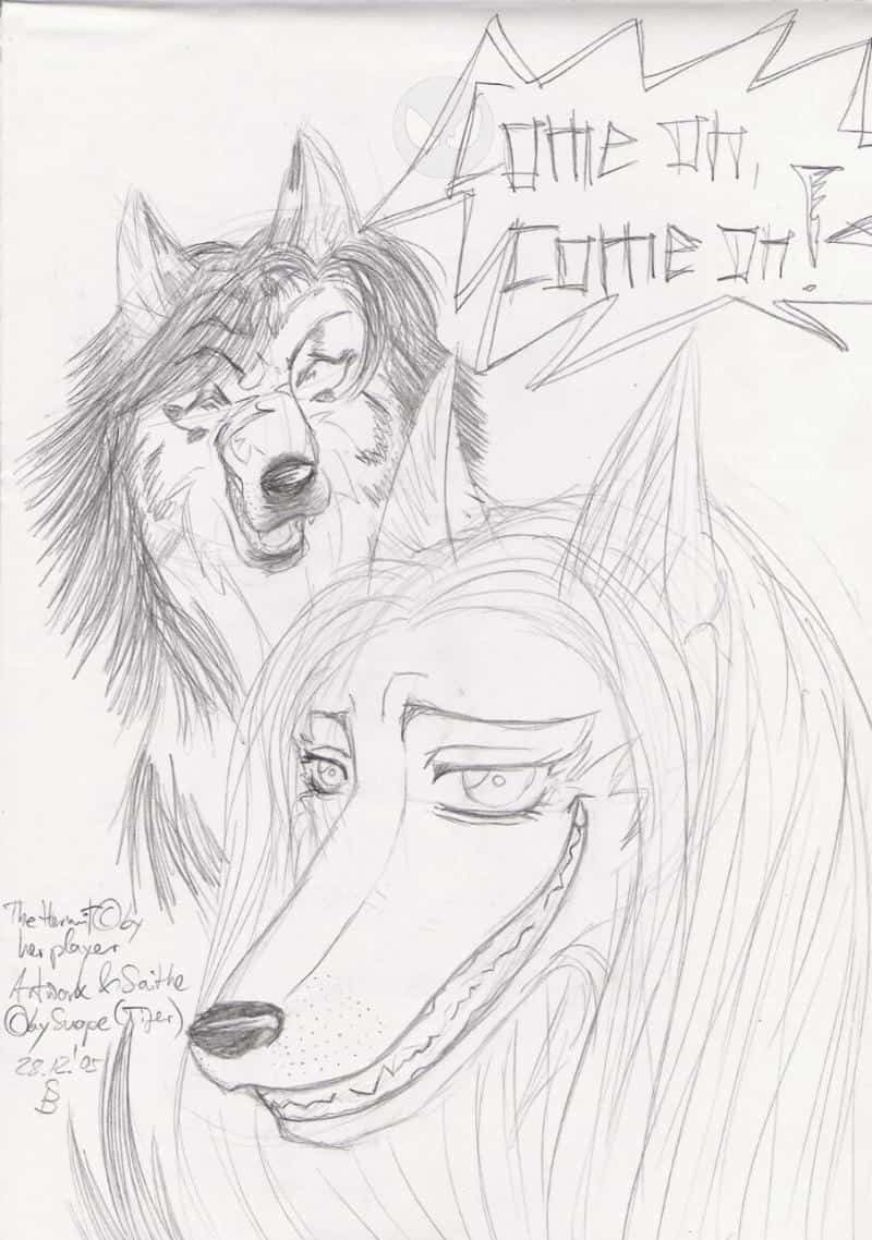 sheepsz und ich gehen ab... ich LIEBE sheepsz' grinsendes gesicht, als das häschen das geshen hat, hat sie draufgezeigt und gemeint "JA! GENAU DAS IST ES!!" ^^ sie gefällt sich selbst außerordentlich gut, da bin ich erleichtert. hehe, alle werden ganz selbstverliebt, wenn ich sie als tiere darstelle.. ^^; *drop* der titel -die ganze szene- soll sich auf das altbekannte elvis lied stützen. wir gehen bei allem ab, erst recht bei so guter musik, nicht wahr, sheepsz? ^^ und wenn noch etwas alki mit im spiel ist, dann erst recht...