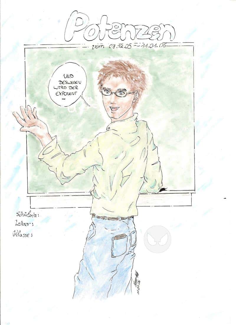 das soll meinen klassenlehrer dar stellen XD den hab ich in mathe und dann hab ich mir mal gedacht, ach komm zeichne den doch einfach mal auf deckblatt vom ordner ^___^ im endeffekt hatte ich dann ne 1* auf den mathe ordner XDDDD fand ich mal voll toll *ggg* was ich schade finde ist, dass man die schatten nicht so gut sieht und die farben nicht so gut rüber kommen *seuftz* das liegt alles nur an meinem scanner *böse rüber schiel* naja ^-^ ich hoffe es gefällt euch trotzdem :P
