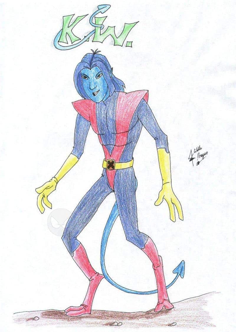 Also ihr (mein) Kurt wagner^^. Ich weiß er sieht ihm nicht sehr ähnlich aber es ist ein anfang. damit ich mal seine Proportionen kennen lerne habe ich es abgemalt von einem bild. Ich liebe kurt wagner einfach er ist so süß und so cool xD. bitte kommis