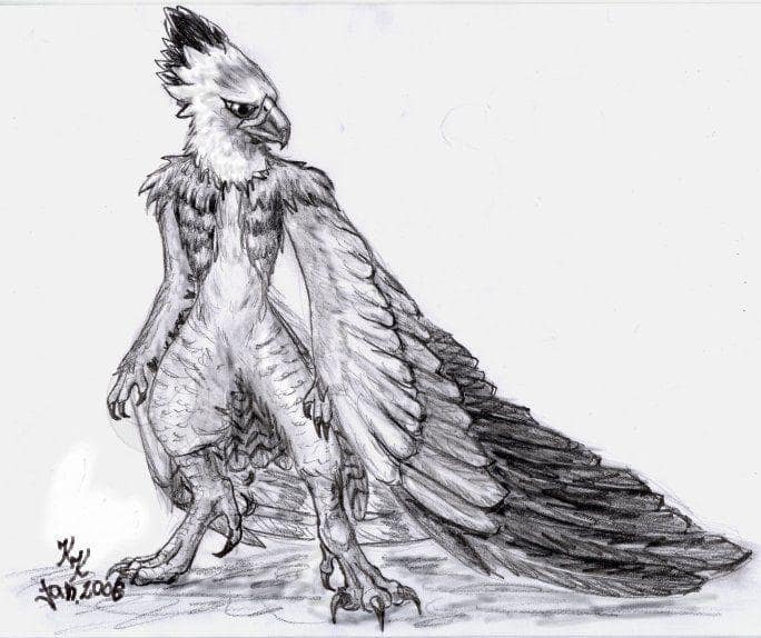 Ich hatte mal wieder Lust ´nen Mischling zu zeichnen. Als Vorbild diente mir die Harpie (Greifvogelart aus Mittelamerika/Panama). Es ist nur ´ne Vorzeichnung...ich werd´s irgendwann mal kolorieren.