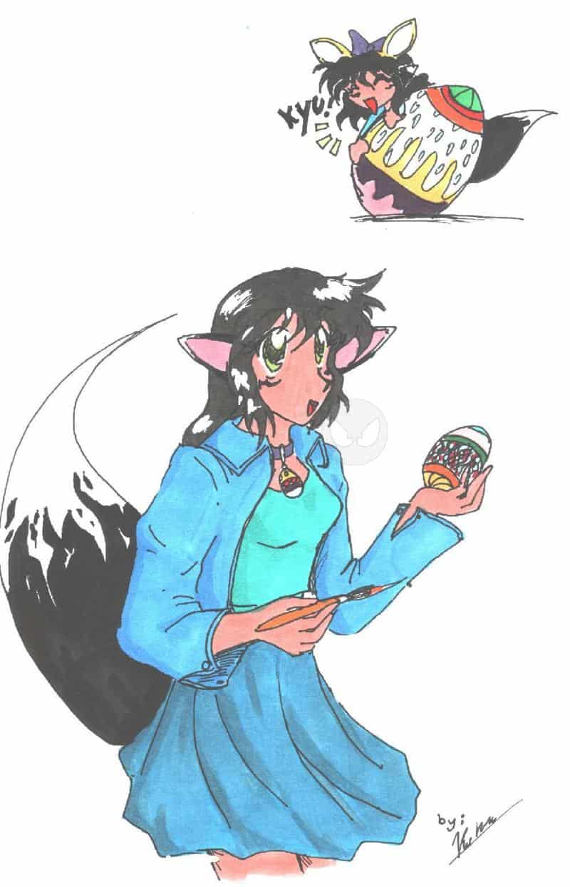 Ich hab den Schrott jetzt auch gecolot. Wie man sieht hab ich imme rnoch keinen richtigen Skin-Marker, ich hab versucht, diesen Flash-Pink effekt abzuschwächen indem ich das ganze n bissel gebleicht hab (am PC), aber richtig geklappt hats auch nicht. Hm.. ich finde irgendwie, dass das ganze Bild von Kaoris dunklen Haaren udn dem Schweif farbig erdrückt wird... Mist >_<