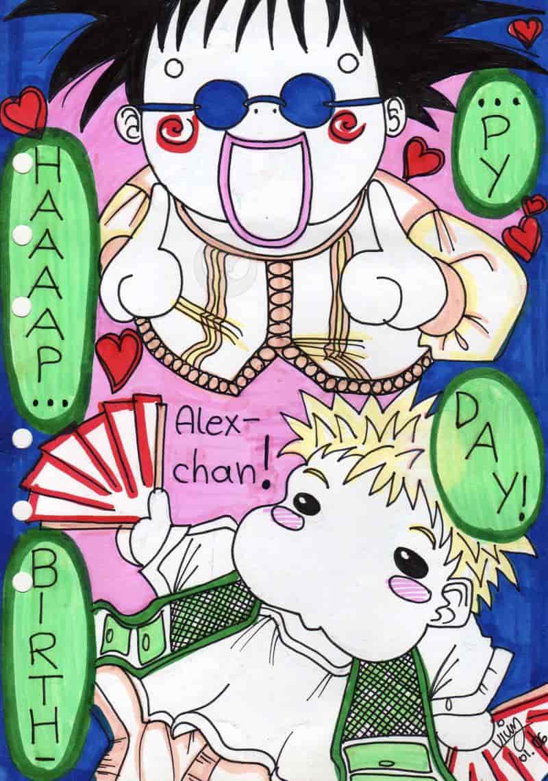 es ist ein Wahnsinn, seitdem ich in der 8. bin kann ich in der Schule nix mehr zeichenn -.- zumindest nix "hochwertiges" ^^ also das hier ist die erste Seite des Billets für meinen Bruder, das ich ihm im Jänner gemacht hab (er ist 14 geworden) *Xandimanndi knuddelwuddelknuffbussl* Okay, die anderen beiden Seiten kommen auch noch XD Bussieh baba Vicky