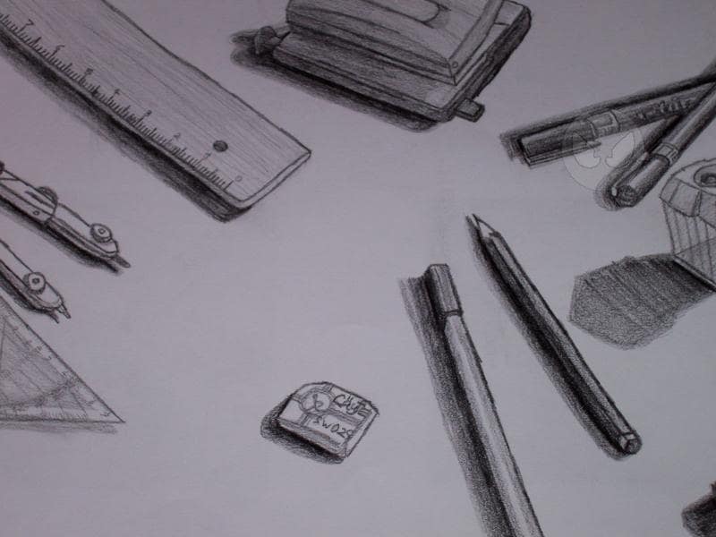 Nya, es ist nur in dem Sinne eine Collage, das ich verschiedene Gegenstände, die man in einem Büru vorfindet, zusammengetan habe, und dann abgezeichnet habe....