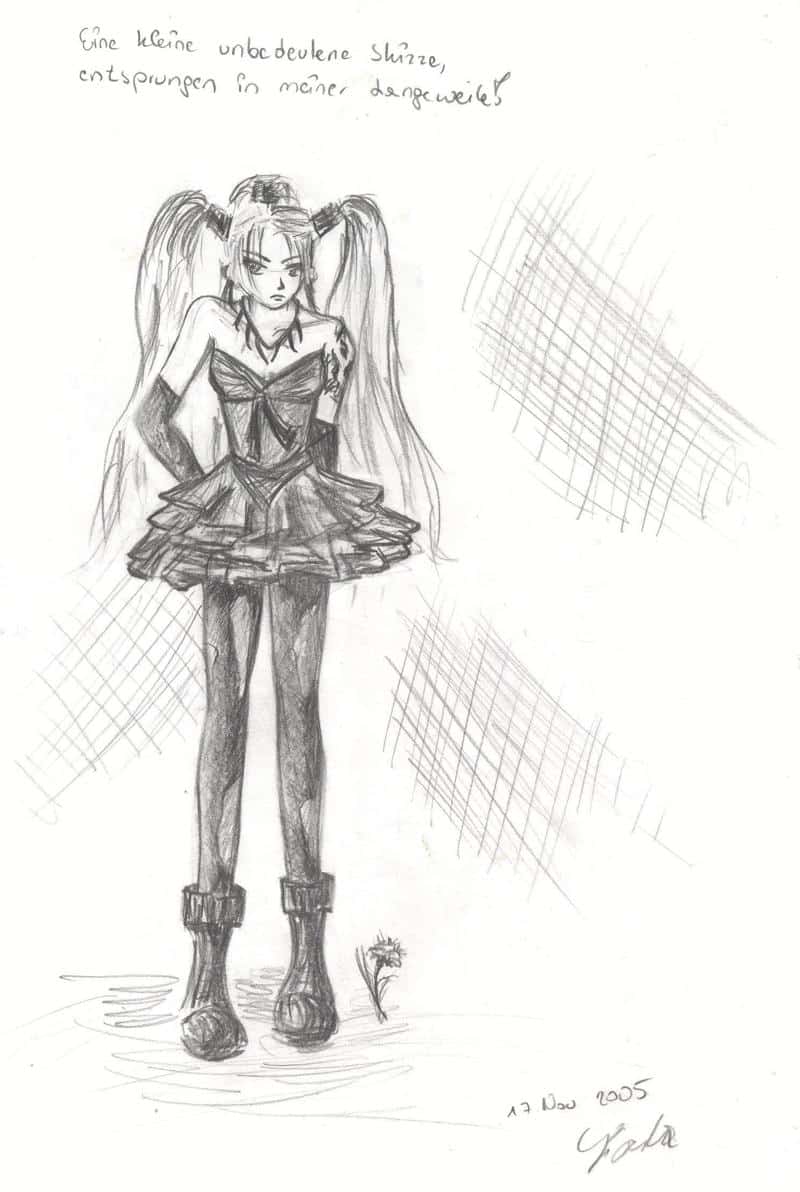 ich wollte endlich mal was krasses zeichnen. das habe ich auch in der schule gemacht!!!! so ein outfit hätte ich auch gerne nur ob ich es auch tragen würde......maybe