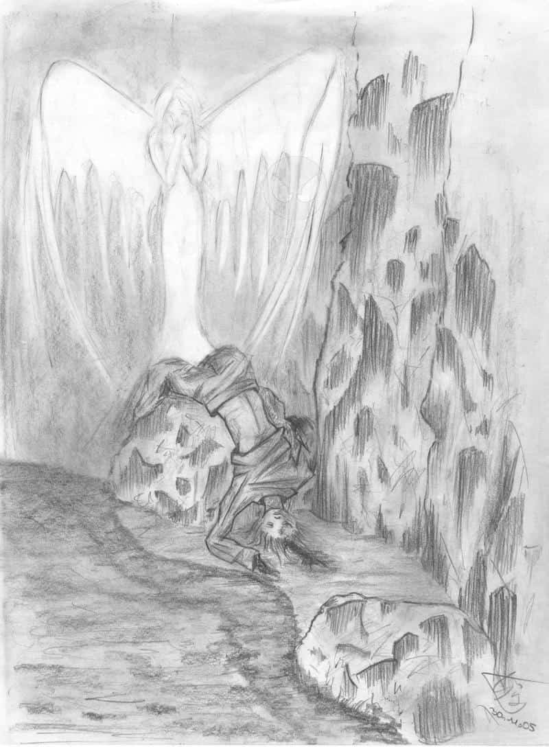 die entstehung: ich habe einmal ein buch gelesen(ich lese gern (colles zeug)). am ende war es so schrecklich demprimierend und traurig, dass ich geheult habe(passiert selten). na auf jeden fall es is wer gestorben, was nicht so traurig war....naja...vielleicht wisst ihr was ich meine....auf jeden fall, traurig war die art wie es beschrieben war. danach habe ich meinen gefühlen freie bahn gelassen und hab angefangen zu zeichnen..........