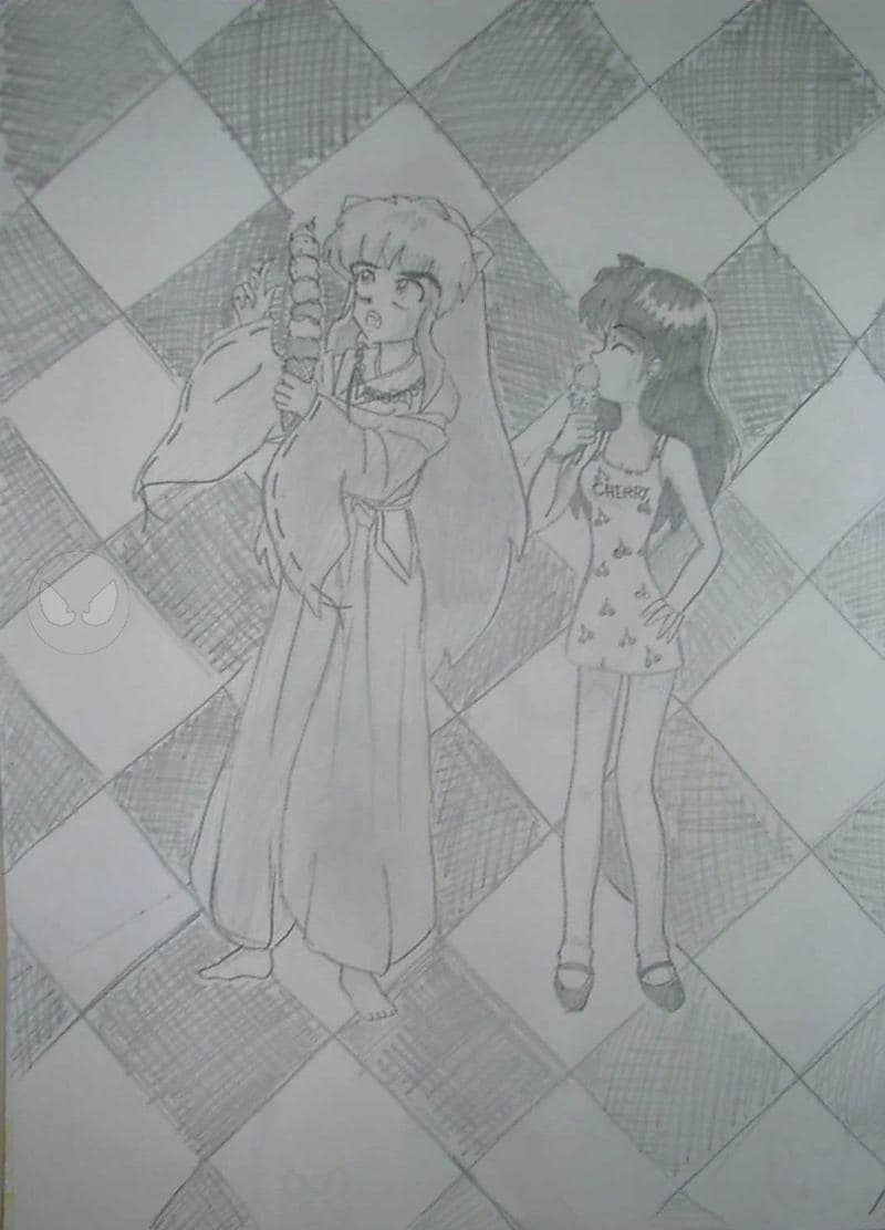 dieses bild... mag ich! es ist NICHT abgemalt, geschweige denn abgepaust! ich habs mir heute morgen ausgedacht... ich finde, dass es ganz witzig geworden ist! ich mag es sowieso, wenn inuyasha so..... kindlich dargestellt ist! es ist doch ganz süß geworden, oder?? der hintergrund... naja, ich will eigentlich nichts dazu sagen, aber eins muss ich doch loswerden: eigentlich sollten die beiden eine fußgängerzone oder ähnliches langgehen, aber das ist nix geworden, also ist der hintergrund sowas wien schachbrett geworden, naja, wen störts...