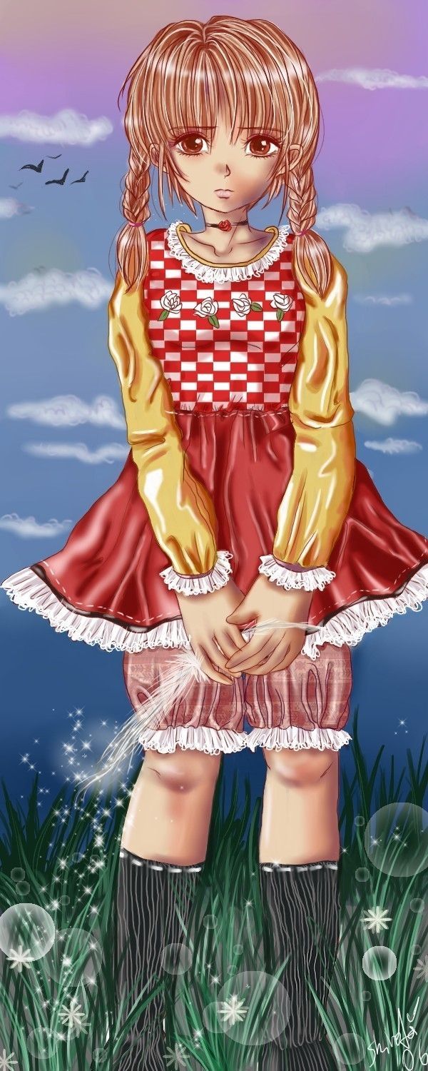Mein neues Bild hier war ziemlich kompliziert, was man hier nicht vielleicht sieht.**drop* Es ging vor allem um die endgültige Pose des Mädchens. Urspünglich war das gesamte Bild anders und wisst Ihr woran es gescheitert ist? Ich konnte bei der ursprünglichen Idee die Hand einfach nicht gut zeichnen, bzw. grauslig zeichnen. So entstand das hier, was aber nicht schlechter, eher besser, als die eigentliche Idee war.