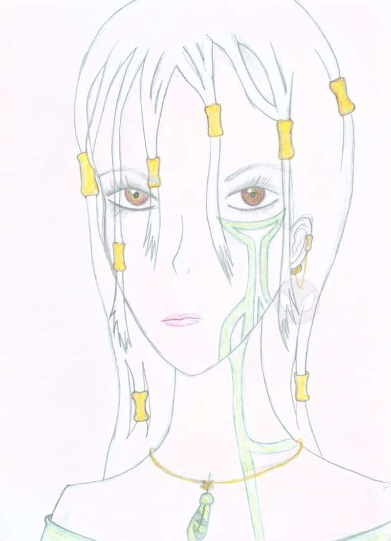 So, da ist da Bild wieder! Ich hatte vergessen den Scanner richtig einzustellen, und den Text den ich dazu geschrieben hatte... äh, der ist weg, also was zu erklären ist: Dies ist meine Vorstellung von der Aerdromierin aus Otherland! Wie gesagt, ich find sie guckt als würde sie ihr Schicksal erahnen und nicht ganz glücklich damit sein.... Der Typ der ihr Schicksal übrigens besiegelt (Johnny Wulgaru... *sabber, babsch und damit wegrenn weil nicht teilen will* MEINS!!) kommt auch noch, allerdings dauert das ein Weilchen weil ich damit so meine Probleme hab, immerhin musser cool, leicht überheblich und dennoch uneinschätzbar nett, geheimnisvoll, trainiert und dennoch untrainier aussehen... TT.TT man will dem Buch ja treu bleiben und das mach thalt ein bissl Probleme... na egal, bidde ein paar Kommis und Bewertung,
