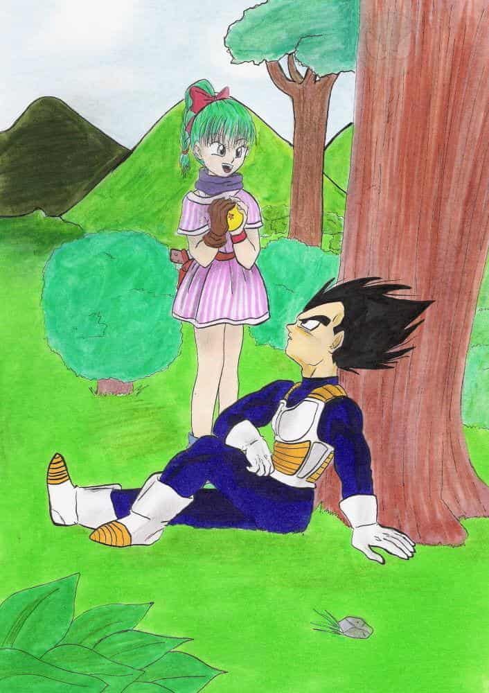 Die junge Bulma und Vegeta. Sowas wollte ich schon immer zeichnen^^ Vielleicht zeichne ich auch ein Bild, indem Bulma den kleinen Vegeta begegnen wird.^^