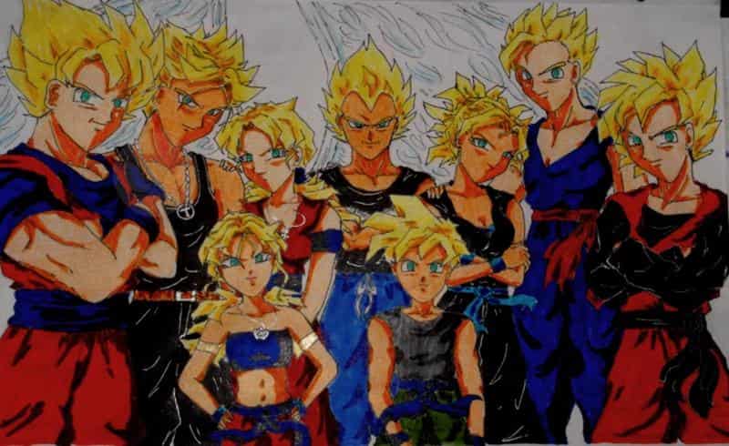wieder ein komplettes Saiyajin Bild (diesmal sogar mit Vegeta, Son-Goku und Son-Goten (ganz rechts) ich mag es irgendwie SSj Bilder zu zeichnen!^_^