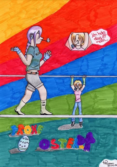 Okay, bevor ich was zum Bild sage, sag ich schon mal was. Das wird erst mal das letzte, bis dem Montag nach Ostern, weil ich in der Zeit im Urlaub bin. Jetzt zum Bild: Es kommt gleich ein hübscheres. Ich würde sagen, man sieht das ich mir nicht viel Mühe gegeben habe. Na Ja, Frohe Ostern! Eure Lady