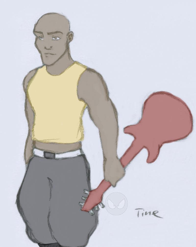 Wie irgendwie alle von meinen aktuellen Zeichnungen, ist das hier wieder am PC koloriert worden.. War nicht sonderlich aufwendig, auch wenn ich ziemlich Probleme mit der Anatomie des linken Armes und der E-Gitarre hatte. Naja egaal... Also warum ich ihn gerade dunkelhäutig gemacht hab, weiß ich nicht genau.. Ich glaub ich hatte Probleme damit nen passenden hellen Hautton zu finden, und hab dann einfach braun genommen. Die Zeichnung hab ich gestern Abend hingekrickelt und eben nach der Schule schnell koloriert. Musik bei der Zeichnung: "Seether - The Gift", M. beim Ausmalen: "Nelly - Over and Over" o.o° Ich hab das gefühl er sieht etwas homosexuell aus o.o° ... auch egal .. Vielleicht mach ich auch noch nen Hintergrund, wenn ich mal die Lust dazu verspüre... Würd mich über Kommentare sehr freuen^^. Schon mal DANKE!