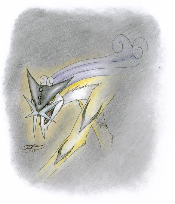 also ich hab versucht raikou - den donner mal in meinem stil zu zeichnen; wie er so aus der dunkelheit geschlichen kommt.
