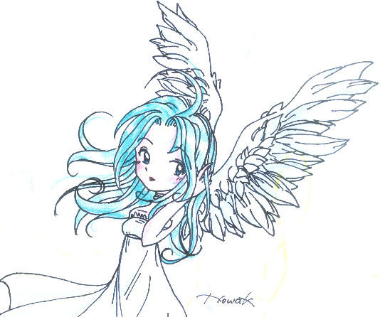 Is ne kleine Zeichnung zu meinem Fanfiction "Stirb Bulma, auch wenn ich dich liebe" Denn auch nach ihrem Tod is sie doch der schönste Engel auf Erden. Leider musste ich das Bild ziemlich weit von Unten her kürzen, was ziemlich schade ist da man das Kleid jetzt nicht mehr ganz sehen kann, aber damit die Flügel zu sehen sind musste ich es tun :(