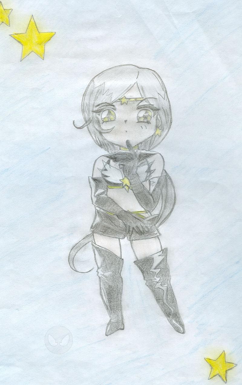 Ich habe Sailor star Healer gezeichnet, weil ich chibifiguren einfach nur süß finde. Ich habe eine schwäche für sie, Schurken und starke Typen^^