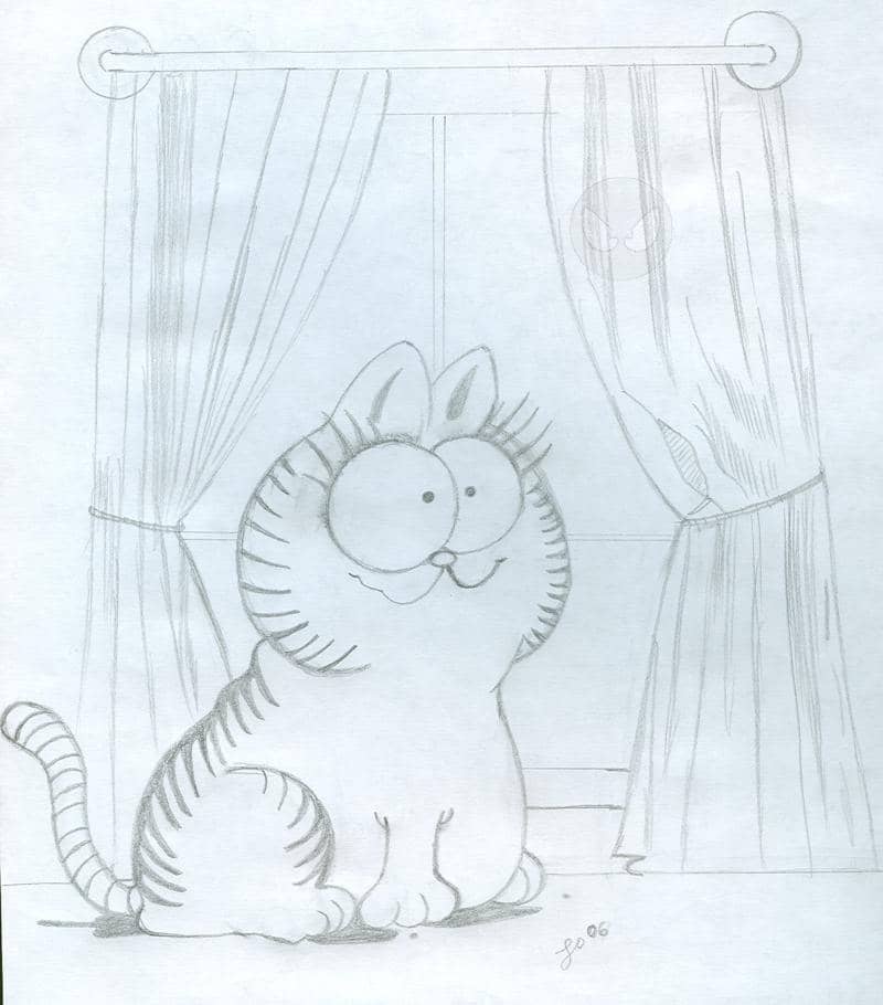 Das ist Normel, Garfields Erzfeind! Er sieht zwar niedlich aus, aber hat er es faustdick hinter dem Ohren. Denn um so klein und knuffig zu bleiben, raucht er. Garfield findet ihm so wiederlich, weil er so süß aussieht. Normel habe ich für mein Bruder gezeichnet,weil er ihm so süß findet. Ich hoffe, dass ihr ihm genauso süß findet.^^