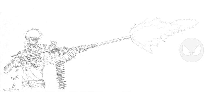 das bild, bzw die pose hab ich aus nem comic abgezeichent....indem ein grosser bulluger kerl ein schweres MG einfach von ner fahrzeuglafette abnimmt und los ballert.