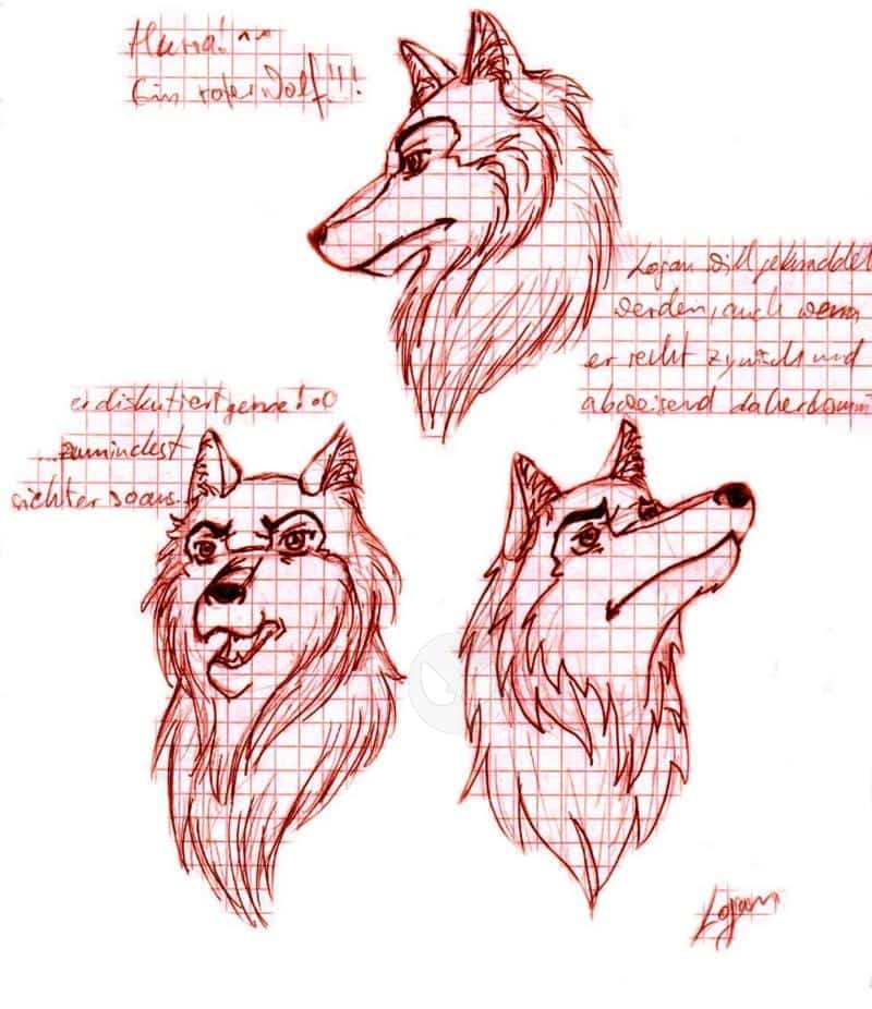 wieder zolle ich einem meiner lieblingscharaktere meine hochachtung, indem ich eine meiner charaktere nach ihm benenne. diesmal ist logan aus x-men an der reihe. nun, der logan, den ich hier gezeichnet habe, weist schon einige ähnlichkeiten zu dem störrischen krallenmann mit dem weichen herzen auf. mein logan ist ein schöner roter wolf (natürlich werde ich ihn noch einmal neu zeichnen!) und stammt aus ayerahs rudel. sehr viel mehr weiß ich leider auch noch nicht über ihn, aber gebt mir nur etwas zeit und ich werde mir eine vierzig seiten starke geschichte zu dem kerl ausdenken können! XD hm, ich seh grad... er ähnelt shayep, bzw. shayep ähnelt ihm, da logan lange vor ihm da war. OHO! könntest du vielleicht sein vorgänger sein, mein kleiner, roter wolf??? O______o; *etwas überfragt sei* nja, sooooo ähnlich sind sie sich jetzt auch nicht... oder?!
