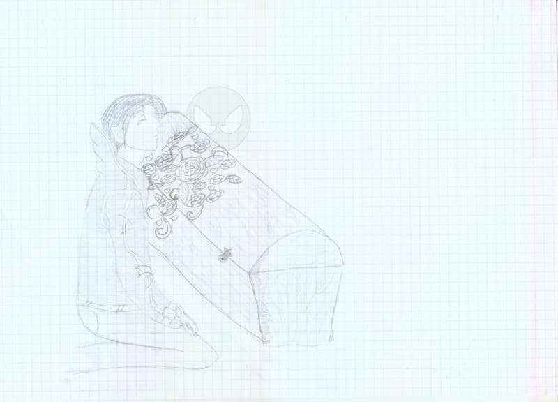 Villeicht ist es euch ja aufgefallen !!! Dies ist der gleiche Junge wie auf dem Bild zuvor !!! Er kniet vor einem Sarg !!! Seine Freundin ist verstorben !!!*schnief* Das bild habe ich gemalt als ich das Lied von Bushido *Augenblick* gehört habe ^^ *geiles Lied* =)