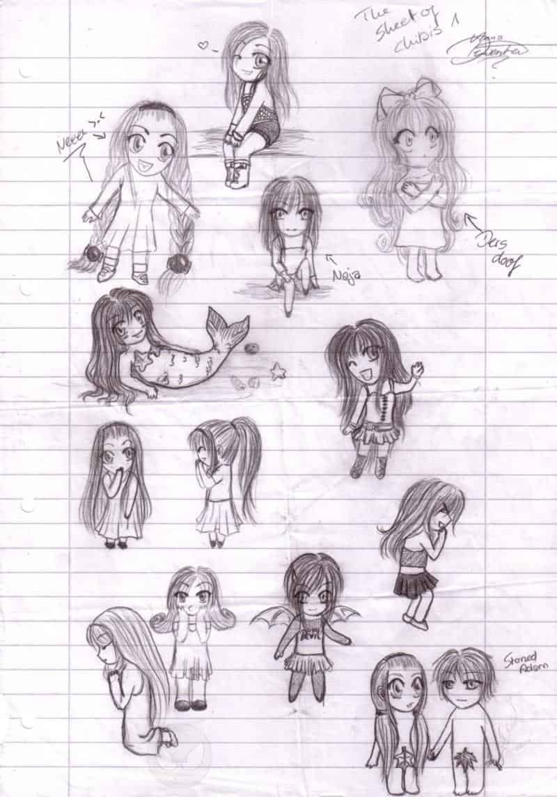 Chibis .. oO .. aber wieder nuuur bleistift .. hab ich immer mal zwischendurch während der schulstunden gemacht .. na denn .. byby ^^