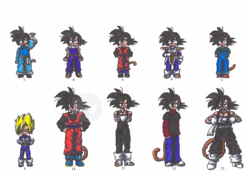 Hier ist die Kleidung, die Gotan im Laufe der Jahre trägt...unten, zu seinen Füßen ist das Alter angegeben ^^ Es dient als Hilfe für meine Fanfic (Die ist auf meiner Seite, und die Adresse dazu gibt’s in meinem Steckie)