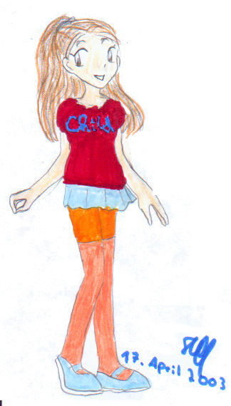 Hi!!! Dieses Bild widme ich jetzt Sayoko^^ Ich hatte ja schon einmal ein Bild von der da oben hoch geladen, das war aber ein Oekaki^^ Jetzt hab ich sie mal in einer Filz- Bleistiftversion, und ich finde sie.... hat wieder eine komische Beinhaltung... Das muss ich an meinen Pics ändern!!!!! Die stehen alle immer so komisch da!! Also die hat irgendwie eine komische Strumpfhose an, die zweifarbig is... Nya^^