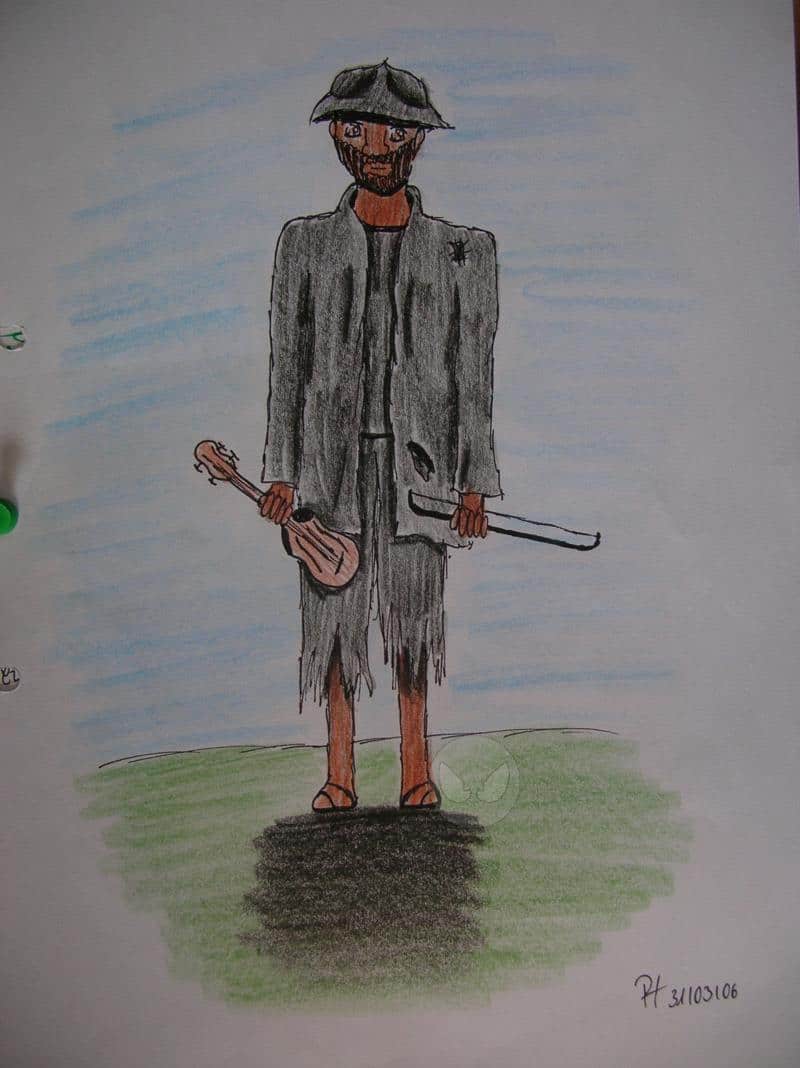 Das ist der schwarze Geiger... er hat den beidenTurteltauben geholfen heimlich zu heiraten etc. ;) ich find den echt sympathisch, obwohl er eigentlich einen totalen Hass gegen die Väter der Verliebten hegen müsste, weil sie einfach seinen Acker versteigert haben... naja, kann man nix machen *ggg* also, liebZ eucH, bis denne antenne, aloHa, da SaorSa