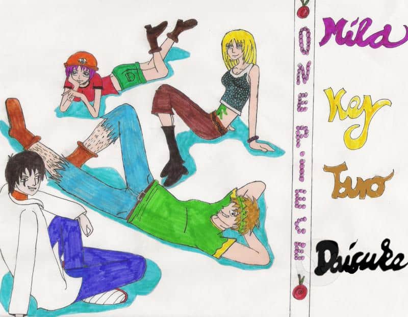 das ungefähr 2 jahre altes bild. das sind selbsterfundenecharas zu one piece.key die blondeh at ne freundin von mir erfunden der rest stammt von mir ich hatte noch nen chara die ran aber ich hatte kein bock sie zu zeichnen xD.naja die colo ist schrecklich weil ich da nur filzstifte und nichts anderes hatte y.y.die posen sind auch gemopst aber nur abgemalt nicht abgepauscht!!!! taro der große der in der mitte liegt ist viel zu kräftig geworden 0.0 deri st eigentlich viel schlanker >.> naja kann ich ejtzt auch nicht mehr ändern ^-^ naja das bild ist echt nicht das beste freu mic haber auf eure commis ^-^.
