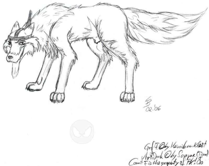 hab ne (einigermaßen) gescheite skizze vom grafen! und auch noch eine auf weißem(!) papier!! da hab ich wölfe immer noch nicht so richtig zeichnen können. wer nen gescheiten kommi zu dem graf will, soll sich den zur ersten skizze durchlesen, ich hab jetzt nicht nomma lust, das alles aufzuschreiben. ich liebe diese wildheit die er ausstrahlt. pofu, die auch ganz vernarrt in ihn ist, darf sie sich nun mit ihm rumschlagen. wenn ich wieder besser zeichnen kann, werde ich mich nochmals an ihn heranwagen und dann vielleicht sogar ne farbige skizze machen. ich brauche nur ZEIT...