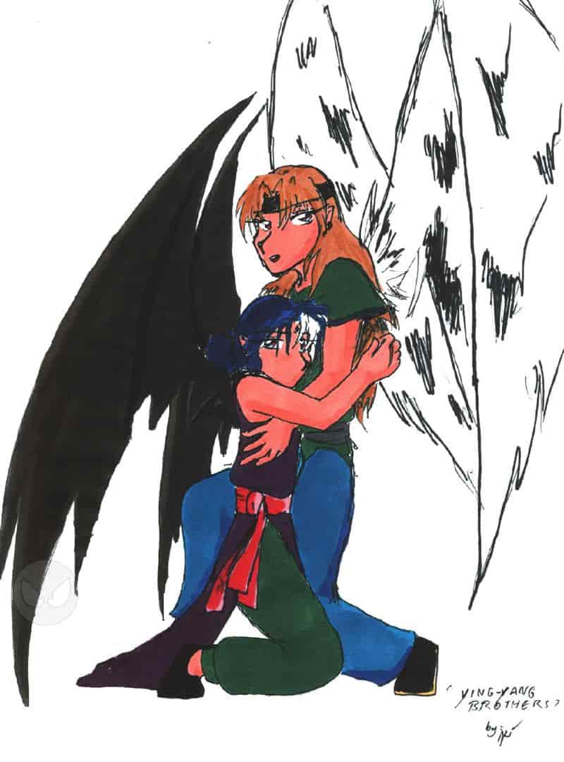 Hum... es hat mcih heute überfallen ^-^. als ich mit Beni-chan getelt hab (vielen Dank übrigens für deine Inspiration!!). Das sollen zwei Jungs darstellen, auch wenn sie nicht so aussehen. Und trotz der mangelnden Ähnlichkeit sind es zwillinge oO fragt nich, was der ganze Mist eigentlich soll, ich hab keine Ahnung ^-^°