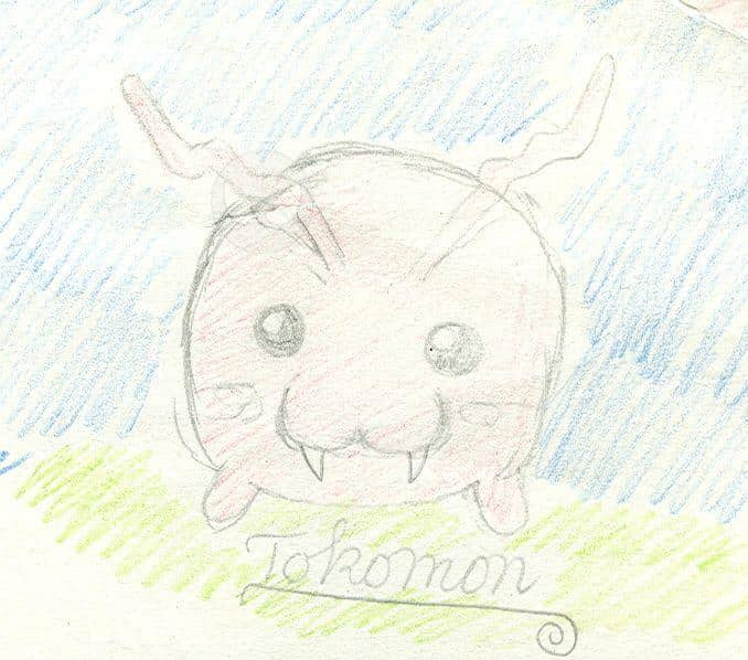 Diese Zeichnung ist schon etwas älter. Ich habe Tokomon gezeichnet, als ich 14 Jahre alt war. Ich weiß, dass er nicht schwer zu zeichnen ist, aber er ist auch süß, finde ich. ^^ Denn es gibt ja auch immer wieder ältere Zeichnungen von einen selbst, die man am liebsten wegpacken will. Aber die Zeichnung ist nicht so eine dieser Art.^^