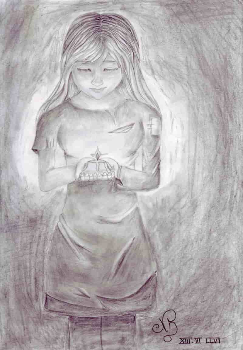 Mal wieder ein Bleistiftbild, an manchen Stellen wirken die Flächen etwas unruhig.Auch wenn dies im HG beabsichtigt war.