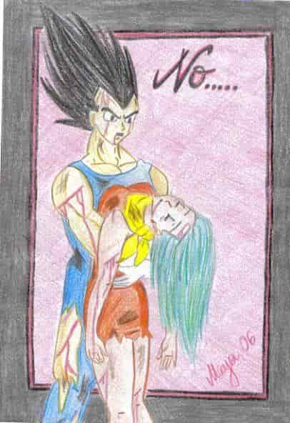im original hatte vegeta den mund ganz weit aufgerissen und geschrien....hmm...ich fand zu der ganzen szene passt ein erstarrter blick von vegeta....darum hatte ich die pupillen eigentlich weiß lassen wollen...naja...sah dann so unfertig aus und ich hab sie schwarz gemalt. ob der blick nich starr in die leere starrt kann ich nich beurteilen^^