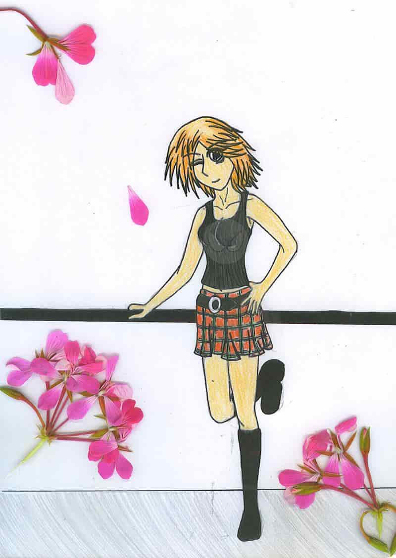Als was mir jetzt so richtig auf dem bild gefällt sind, die Frisur, Augen und der Rock mit einem schottischen Muster.
