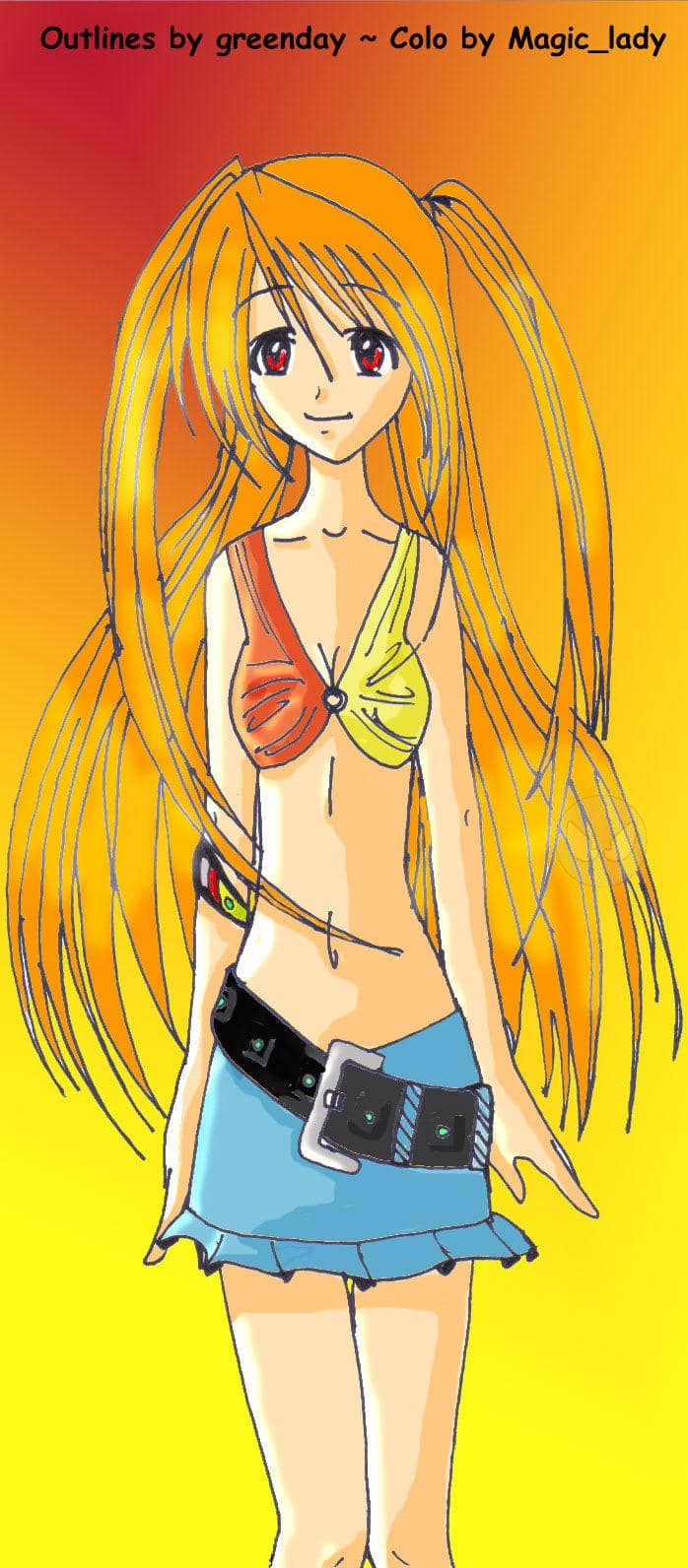 Hmm... und wieder greenday OL`s!! (Ich bin soooooo faul... sollte ruhig auch mal wieder selber OL`s hochladen... ^^°) Jedenfalls zur Colo: Früher hab ich immer zuerst schattiert und dann bin ich noch mal mit dem abwedler drüber. (bei den Haaren). Das mach ich jetzt nicht mehr. Ich lass die Schattierung weg und benutz nur noch den Abwedler. 1. geht’s schneller und 2. siehts irgendwie besser aus!! *smile* Aber das gilt nur für die Haare! Ansonsten coloriere ich wie gehabt!! ^^ Mit der colo bin ich diesesmal echt zufrieden! (außer mit dem Gürtel. Der Sieht furchbar aus!! o.O) Die Farben sind schön hell und passen gut zu einem Sommertag, find ich! ^^ ok... na dann... lg