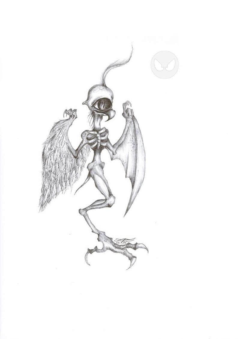 wie versprochen ein weiteres modell. dieses wesen hier hat etwas ähnlichkeit mit einem geier, hat flügel eines drachen und eines vogels und erreicht höchstgeschwindigkeiten. ansonsten benutzt es schnabel und krallen zum fangen der beute. ein unterschied zu den anderen seelenfressern: diese art saugt nicht nur die seele des opfers aus, sondern ernährt sich auch von dessen körper.