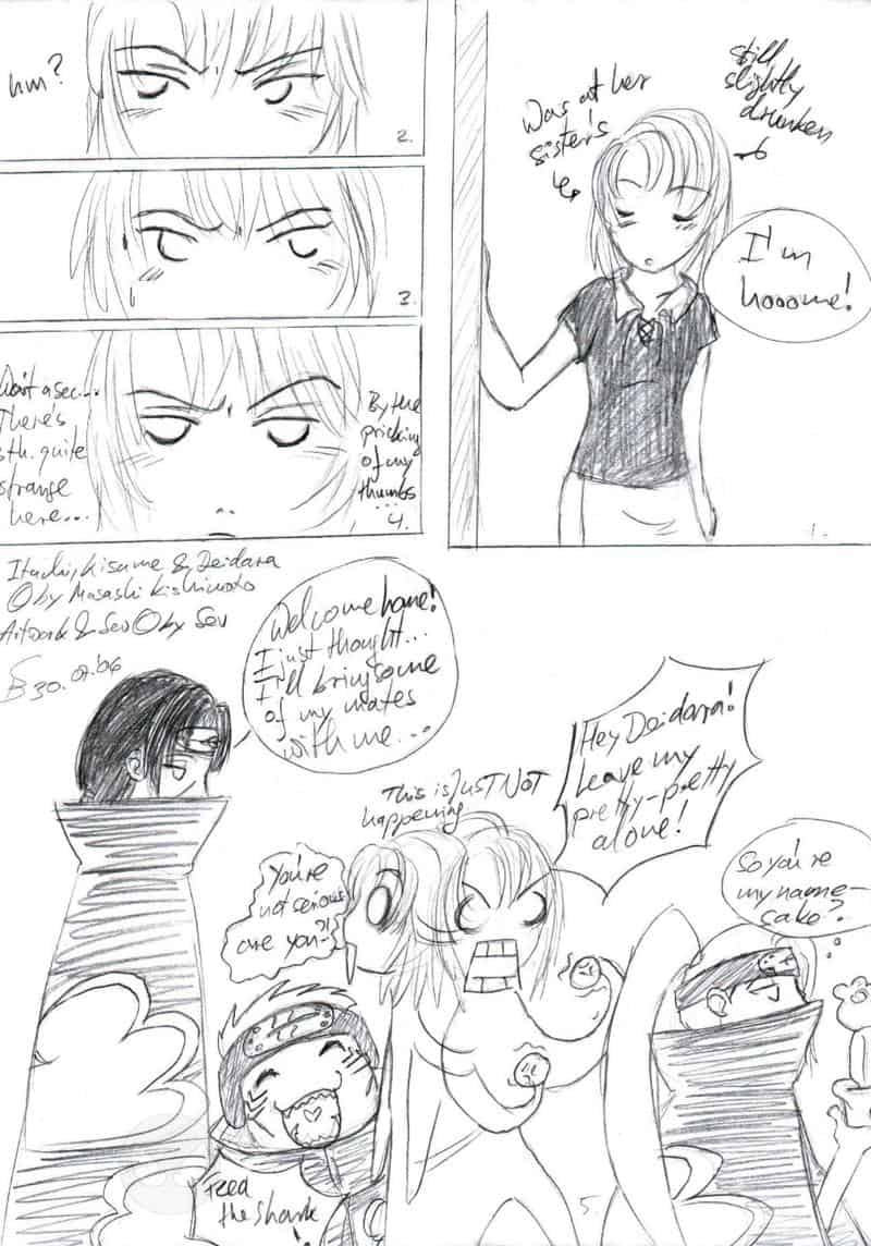 Bitte in OG! Fragen bezüglich Text, bla, bitte in mein GB posten. Jaja, das Leben kann sich von heute auf morgen schlagartig verändern... Ich hatte Itachi an Poff ausgeliehen, aber weil der sich nicht wohl gefühlt hat, wollte ich ihn wieder zurück. Nun ja, ich war die Nacht über bei meiner Schwester (Weiberabend! XD) und was erwartete mich, als ich heute Mittag nach Hause gekommen bin? Die ganze Akatsuki Horde lagerte in meinem Zimmer. Na toll! Itachi hat sich einsam gefühlt, meinte er, hat seine „Mates“ vermisst und überhaupt... Aber warum gerade zu mir?! Auch wenn nicht alle auf das Bild gepasst haben, glaubt mir, alle neun Akatsuki Leutz sind da! Deidara kann nicht aufhören meinen gleichnamigen Kaktus zu bewundern, Kisame streitet sich mit Snape um das Bad, Hidan/Draco kann nur lachend zugucken, Tobi, das Ei, spielt mit Sai und Kakashi Strip-Poker (schlechte, SEHR schlechte Idee!!), Zetsu wackelt fröhlich mit seinem Venusfliegenfalleköpfchen, das mir unbekannte Akatsuki-Mitglied hat sich bei Shape im Schrank versteckt und der Leader will mir sein Gesicht nicht zeigen, um meine grausige Vermutung zu bestätigen (aber ich werd’s noch herausfinden...!). Ach und der SasUKE-Pokéball kullert... Deidara war so freundlich, mir nen neuen zu machen. Wenn man ihn jetzt mit Gewalt öffnen will, explodiert er. Poff wird sich freuen. Gott, sind wir gestört... Weitere Bilder meiner WG werden noch folgen. Ich hab das schon gewisse Ideen, die ich unbedingt auf Papier bringen will...