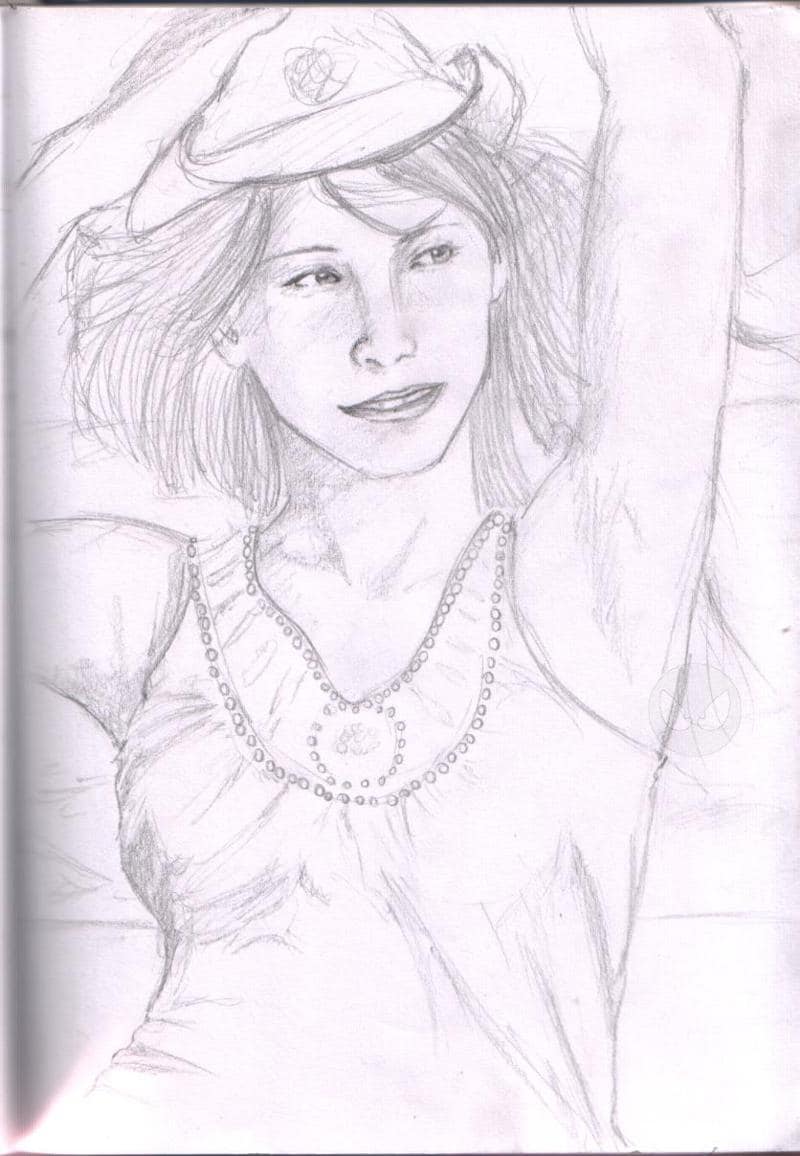 Tut mir leid das die Scannquali so mies is, das Bild hab ich in nen gebundenes Skizzenbuch gemalt und da die Seite dann halt gewölbt is hat sich der Scanner geweigert das ordentlich zu machen...naja...was solls... ^^