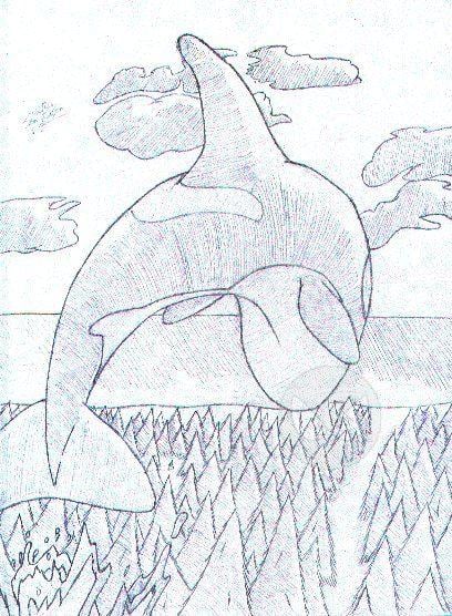 Joa die Idee zu dem Bild kam mir als ich Free Willy angeschaut habe (du solslt in Frieden ruhn Keiko!) irgendwie ist es ja auch ein Tribut an Keiko(Willy). Ohne diesen Film wäre ich sicher nie auf meine Leidenschaft für Orcas gekommen, ja den Film davor hatte ich schon oft gesehen, und die Leidenschaft war schon jahre da, aber bis jetzt hatten mir die Bilder nie gefallen, zudem sind es nicht viele. Und bei dem Bild muss ich noch dazusagen, das ich mal was neuesprobiert habe, ja das Bild sieht verhunzt aus (doofer Scanner! -.-) aber in real sieht es klasse aus, und ich mag es sehr (hat was besonderes finde ich :P)