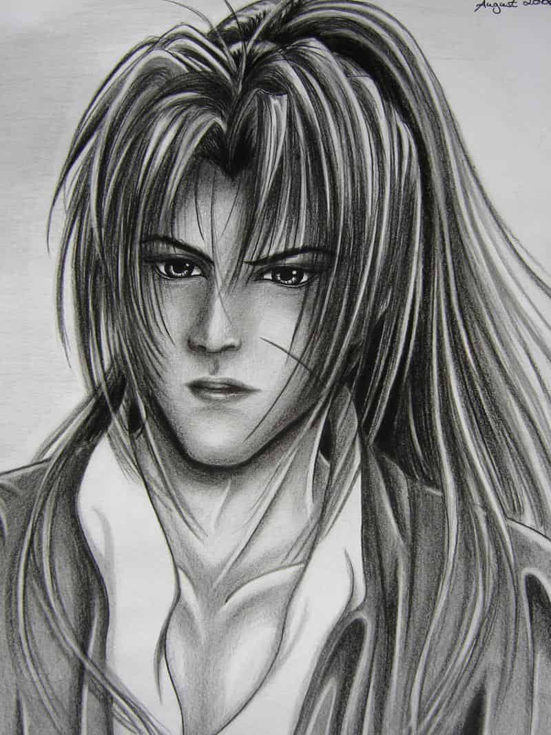 Zum Bild: Mir war danach, so einfach erklärt sich dat. Ich hatte schon länger vor mal wieder einen "realen" Kenshin zu zeichnen, zumal mir der letzte Versuch (der schon etwas weiter zurückliegt) net mehr gar so gut gefallen tut...*kopf schüttel* *net wirklich* Ich habe mich dieses Mal etwas an meinem Potter-Portrait orientiert. Das Bild sollte mehr Kontraste aufweisen als bei meinem letzten "Real-Kenshin". Daher hab ich auch mehr mit sehr weichen Blei- und teilweise auch schwarzen Buntis gearbeitet. Natürlich - und wie kanns anders sein - haben die HAAAAAAAAARE mal wieder am längsten gedauert. Gleich nach dem Gesicht. Bin zwar zufriedener als beim letzten Versuch, wo wirklich ALLES schräg war, aber vielleicht werdet ihr in ein, zwei Jahren einen WEITEREN Versuch hier finden, der dann hoffentlich noch besser sein wird. Ich habs halt versucht. Hoffe, ihr mögts ein wenig. Würd mich arg freuen.^^