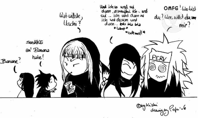 Und SasUKE heißt jetz nur noch Uschi (Us(c)hi-ha XD) ... und naja wir sind alle bananenmiclhsüchtig o,O... in di eItachi immer rein-....ejakuliert^^ ew~ ich wieß, denoch, wenn man dieses kleinen fakt vergisst schmeckts immernoch >3