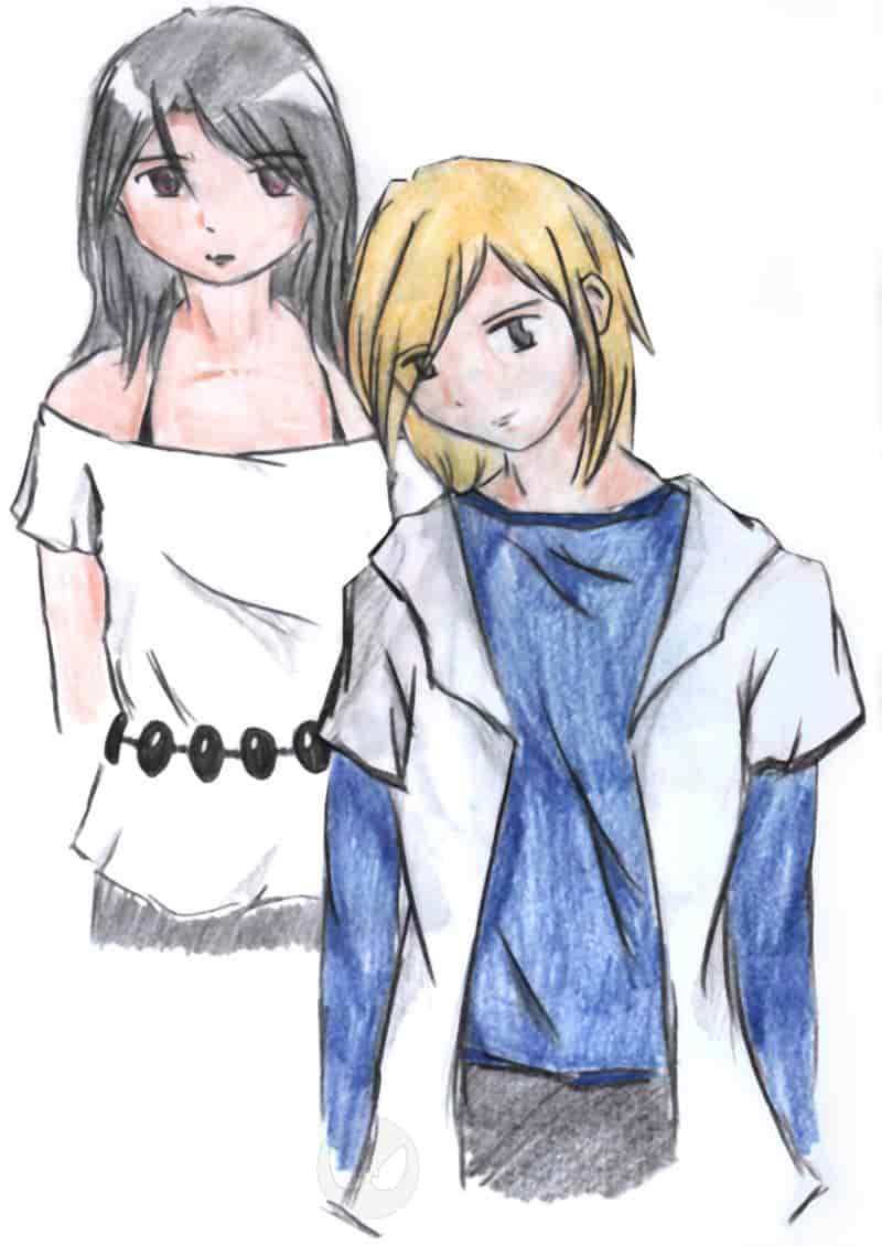 Dies sind die Hauptcharas meiner Geschichte. Kiko und Mika. Da ich nicht am computer colorieren kann .... sieht es vielleicht nicht so professionell aus, aber wie ich immer so schön sage: Es ist eines MEINER Bilder und ich mag es, so wie es ist. ^^