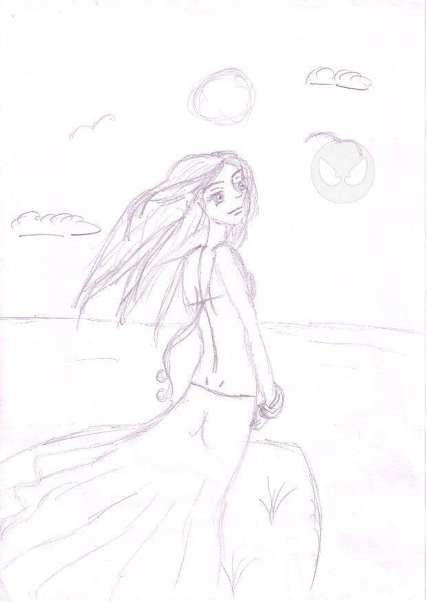 Man sieht das ich schnell zeichne* kann leide nicht anders* bei Rock sieht das nicht so gut aus aber bei denn Haaren geht’s.