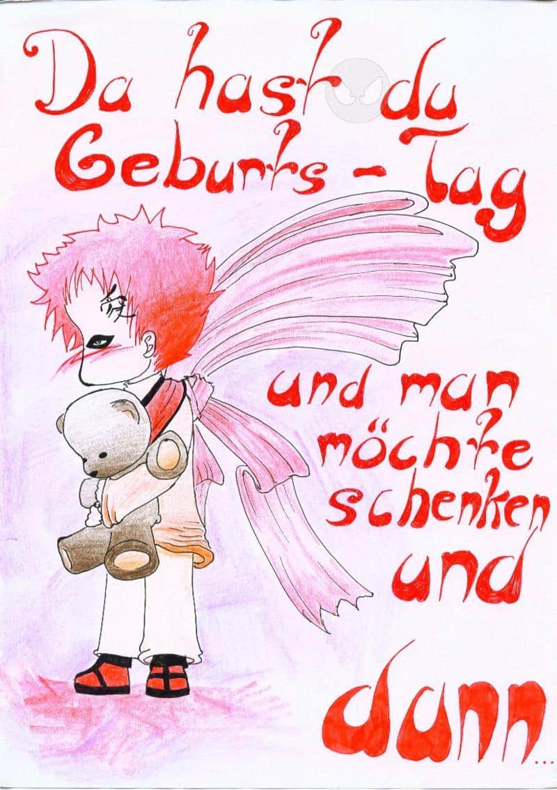 Also, ichs tell das nur rein weil ich finde das es mir gut gelungen ist!! Auch wenn der Scanner das meiste wieder versaut hat (das rot vor allem)!! Wegen dem TExt: Nur so viel, es ist der erste Teil ein zweiteiligen Geburtstagskarte!! Ihr müsst ihn nicht verstehen xD