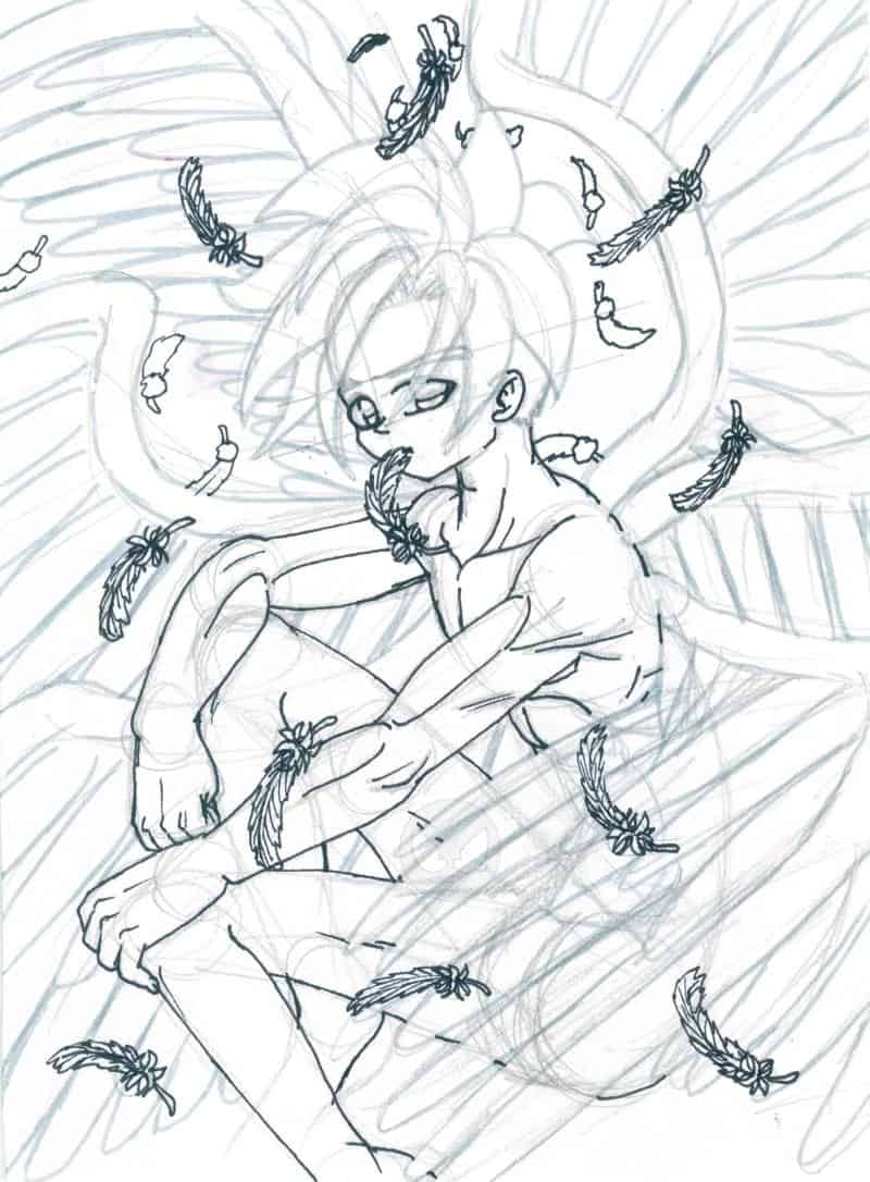 Im zweiten Schritt fahre ich die richtigen Konturen mit schwarzem Fineliner nach. Manche Linien habe ich auch mit grauem, dicken Fineliner nachgefahren (Nr. 94), Der Effekt ist dann enorm (zeigt sich in Schritt 4)
