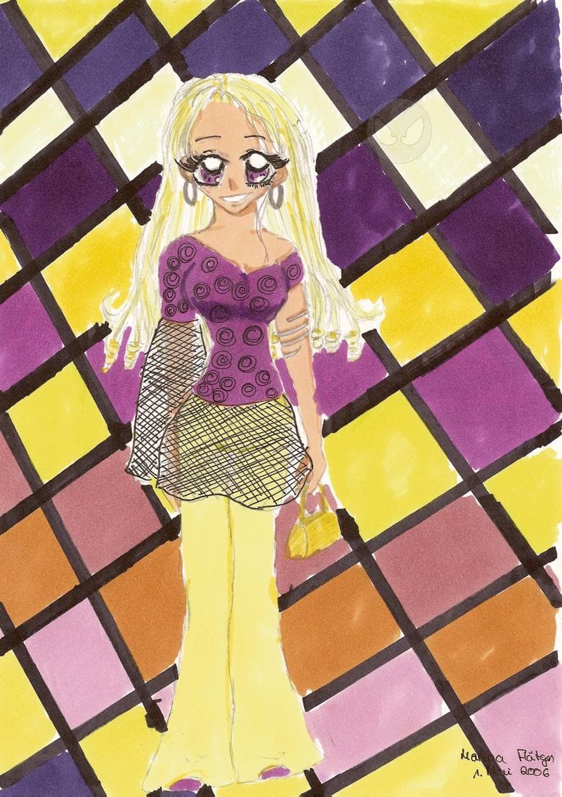 Das Mädl gefällt mir ganz gut vor allem die Lila augen!!! Der Hintergrund is net so schön, die schwarzen streifen stören...