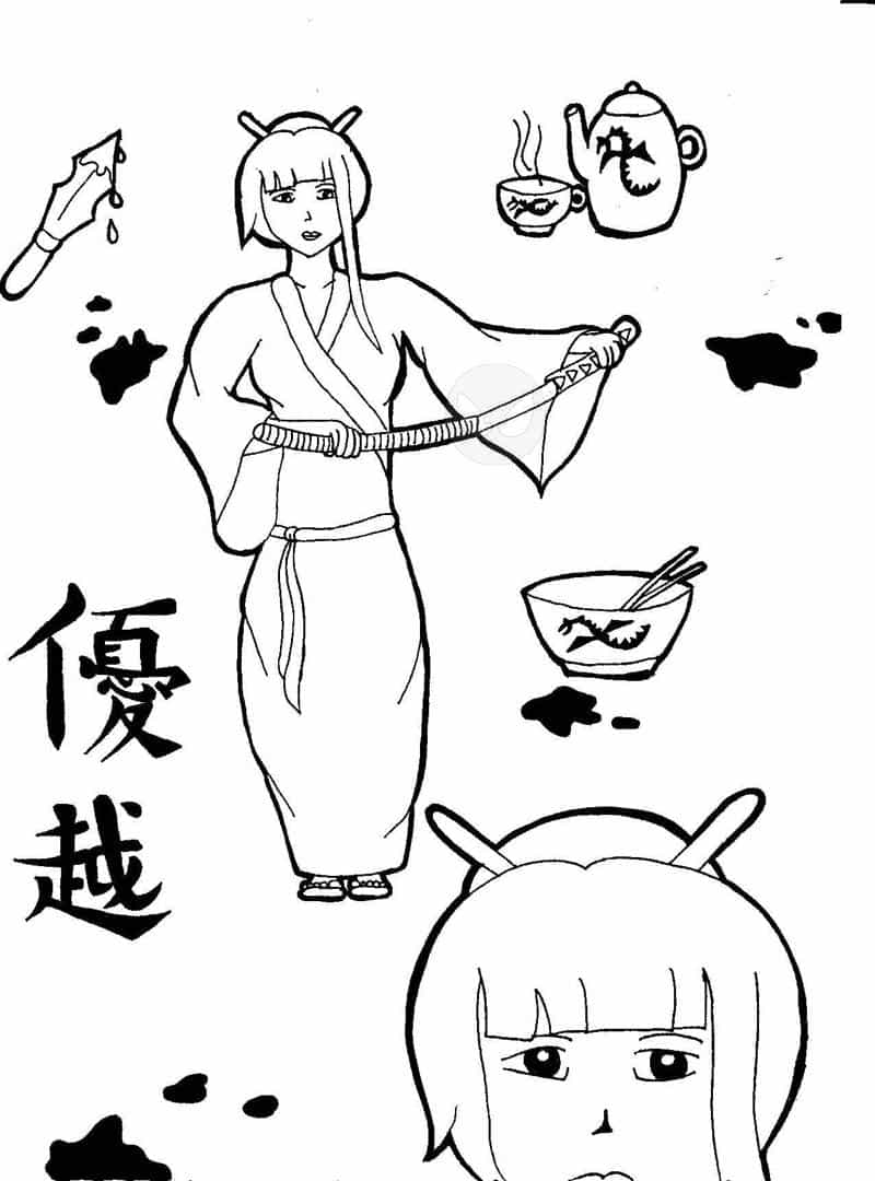 also, das Bild hab ich gemalt, nachdem ich den Film "Kill Bill" geguckt hab, hat mich irgendwie inspiriert^^ joa, also ich bin eigentlich sehr zufrieden damit...is auchmal ein Bild, bei dem ich mich schon bei den outis um den hintergrund gekümmert hab^^ colo kommt natürlich auch noch. kommis erwünscht, wie immer^^ (die schriftzeichen bedeuten "Überlegenheit")