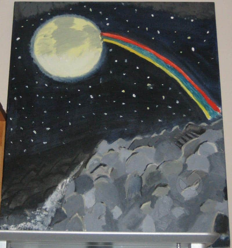 Öhm ok ich glaub die meisten werden sich fragen: Was hat das mit Inuyasha zu tun? Naja in einer folge mit Ayame (so heißt diese Komische Wolfdämonin die was von Koga will doch oder?) Erinnert sie sich daran wie Koga sie nach Hause tragt und über nen Berg gehen da sieht man im hintergrund halt nen Mondregenbogen und da hab ich mir gedacht ich male den mal. der regenbogen ist in 1 minute schnell hin geklatscht worden und danach habe ich das nicht mehr ändern können naja egal is etwas schieft hoffe es gefällt jemandem ^^