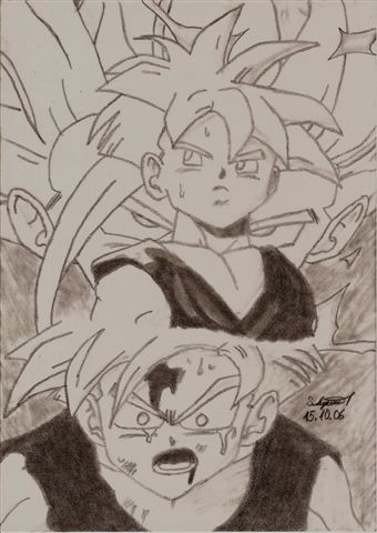 Auf dem Bild sind mehrere Gohans gezeichnet die alle in der Cell Saga vorkommen.