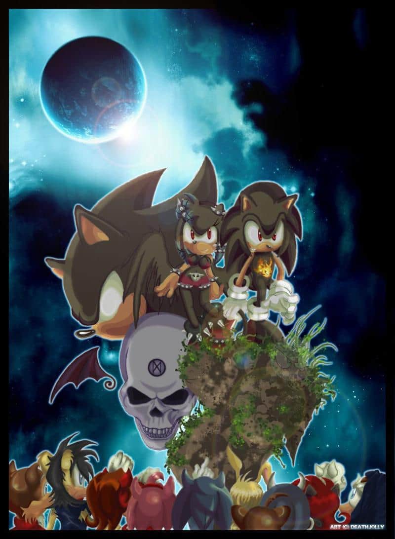Wie dem auch sei, das is mein neuestes Pic, das auf eine RPG Story basiert. Hauptcharas sind das Paar Crow und Dark Sonic, im Hintergrund ist seine Superform Super Dark Sonic zu sehen. Der Schädel ist der sogenannte Bösewicht Chemosh.
